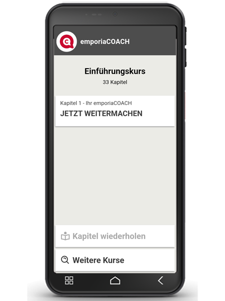 The chapters in emporiaCOACH can be repeated as often as desired and can also be completed quickly if desired - the user determines the learning speed themselves.