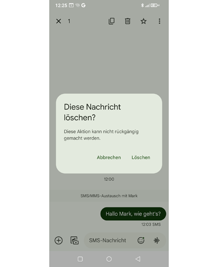• Tippen Sie auf die Nachricht, die Sie löschen möchten, und halten Sie sie gedrückt, bis sie hervorgehoben wird.